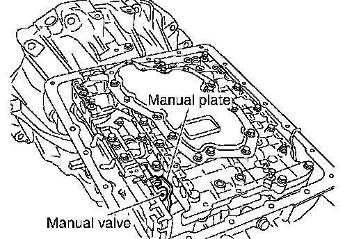 ^ Assemble it so that manual valve cutout is engaged with manual plate projection.