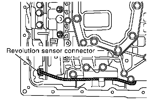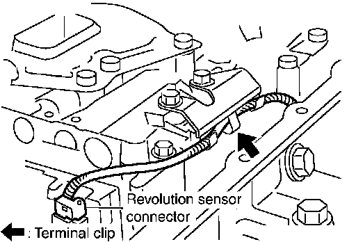 ^ Hang down revolution sensor harness toward outside so as not to disturb installation of control valve with TCM.