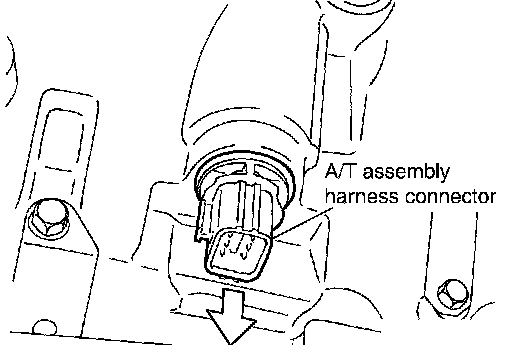 14. Pull down A/T assembly harness connector.