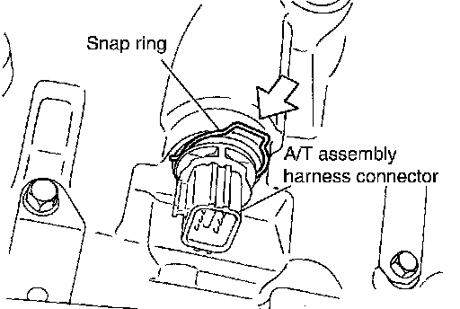15. Install snap ring to A/T assembly harness connector.