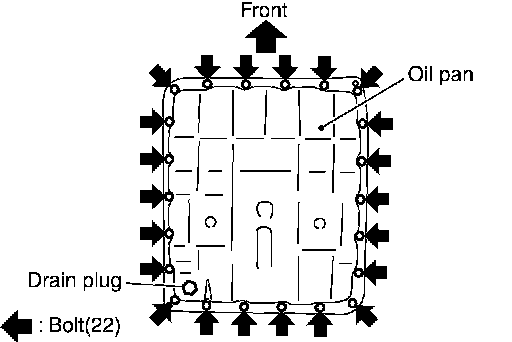 c. Tighten oil pan mounting bolts to the specified torque in numerical order shown in the figure after temporarily tightening them. Refer to AT-265, Components.