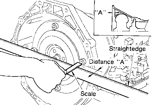 c. Measure distance A to make sure that torque converter is in proper position.