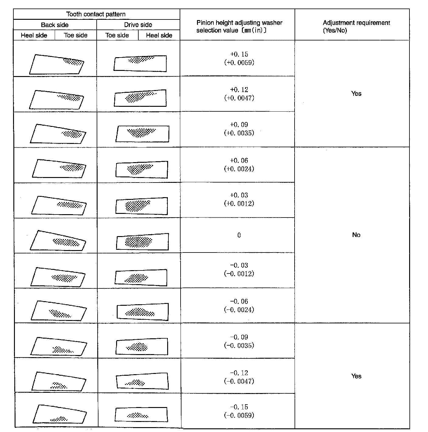 CAUTION: Check tooth contact on drive side and reverse side.