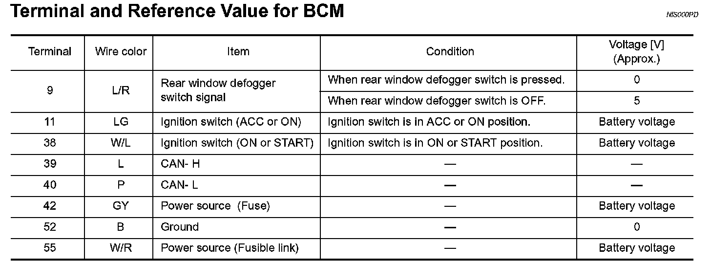 Terminal And Reference Value For BCM: