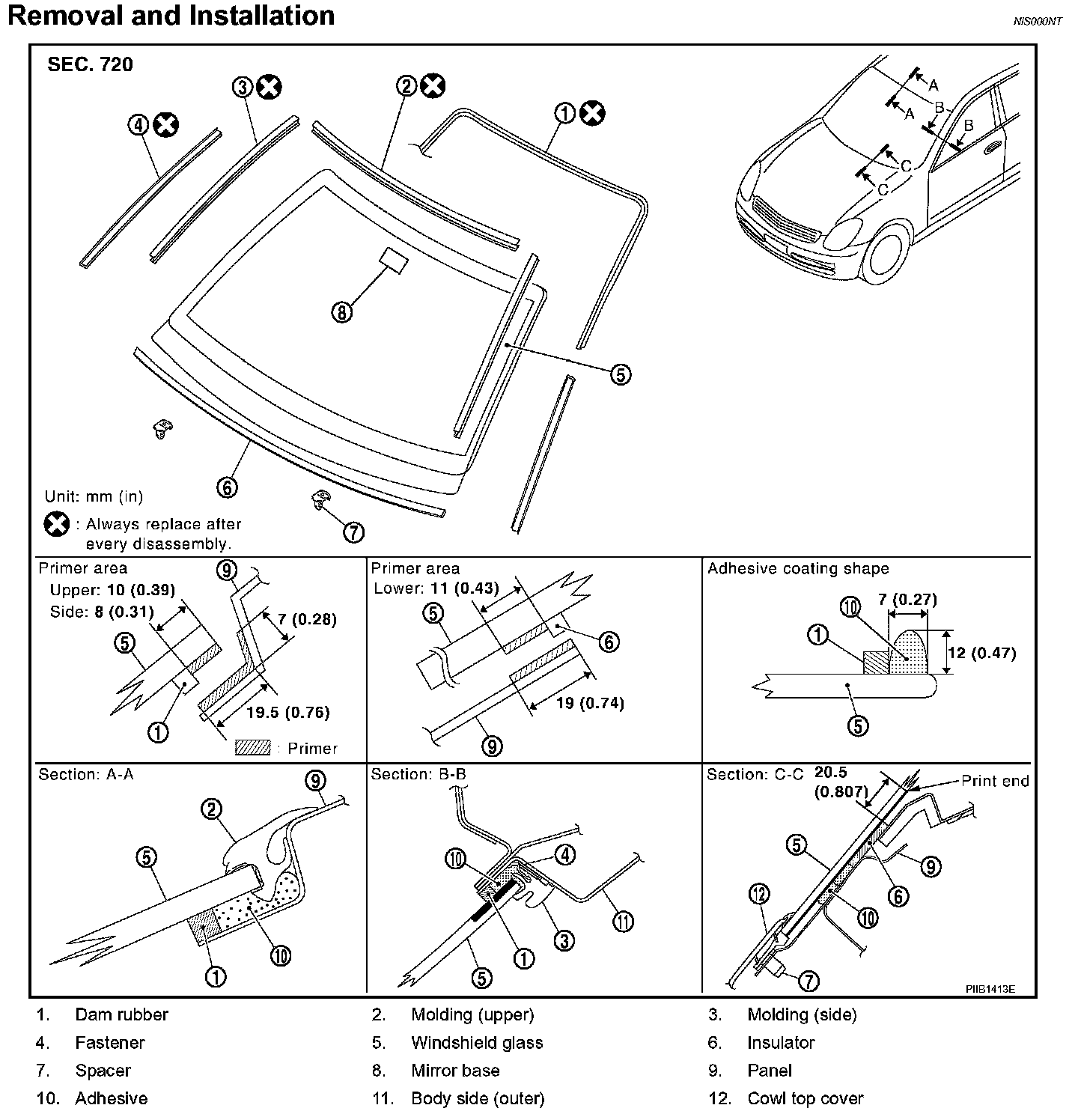 - Use a genuine Nissan Urethane Adhesive Kit (if available) or equivalent and follow the instructions furnished with it.
