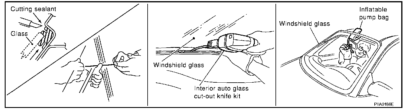 - When a windshield glass is to be reused, do not use a cutting knife or power cutting tool.
