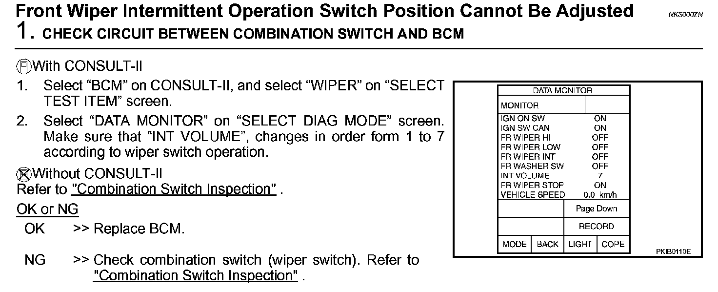 Front Wiper Intermittent Operation Switch Position Cannot Be Adjusted: