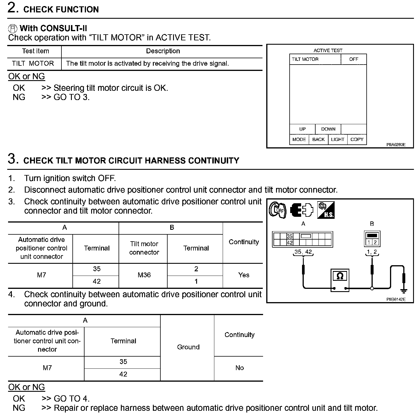 Tilt Motor Circuit Check (Steps 2 - 3):