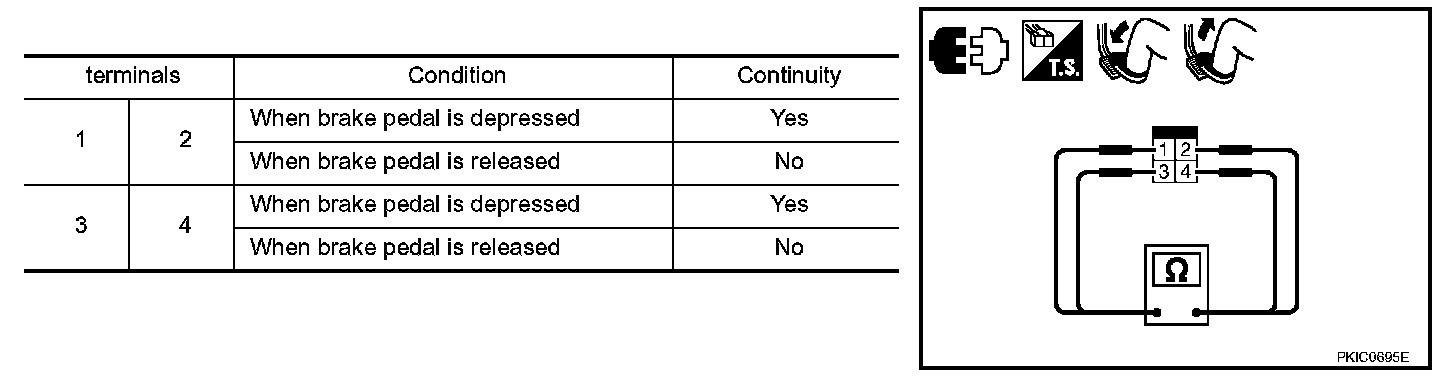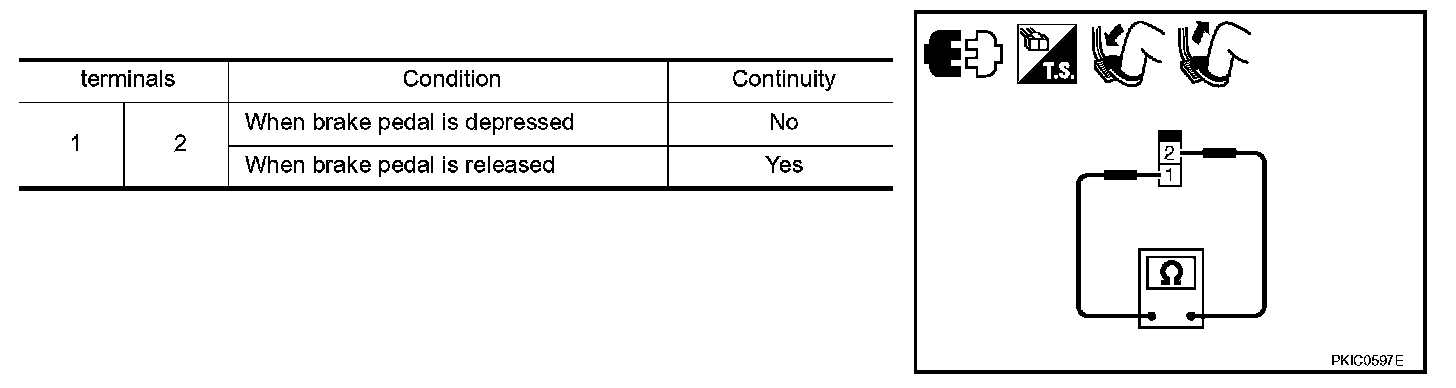 ICC Brake Switch and Stop Lamp Switch- Check continuity between ICC brake switch terminals.