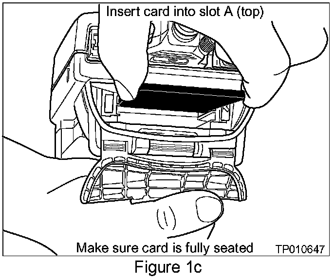 1. Install the 16MB (red/white) Diagnostic Card into Slot A (top slot) of CONSULT-II.