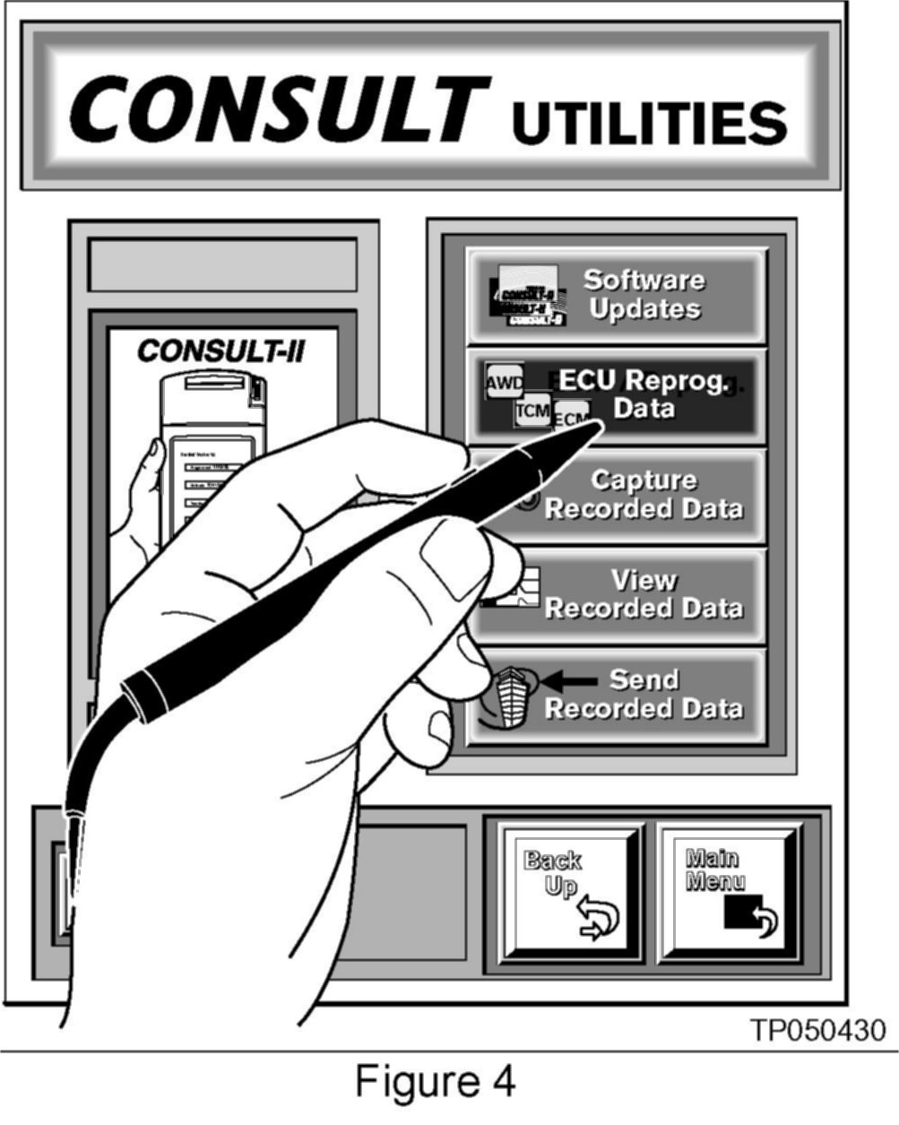 6. From the "CONSULT UTILITIES" screen select "ECU Reprog. Data" (see Figure 4).