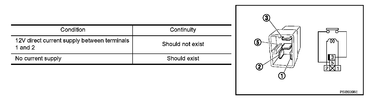 Check continuity between ICC brake hold relay terminals 3 and 5 under the following conditions.