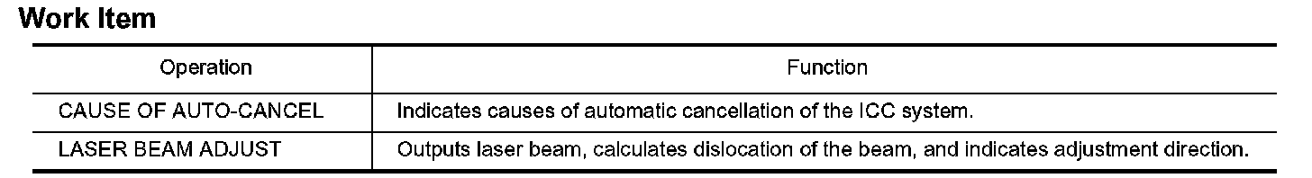 - "CAUSE OF AUTO-CANCEL" displays times of ignition switch ON/OFF up to 254 maximum. 254 is kept though the number exceeds 254. The number returns to 0 when detecting the same cancellation causes.