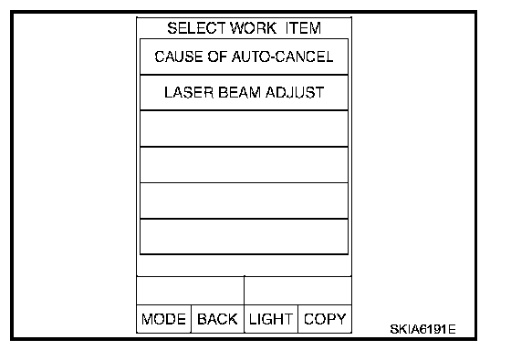 2. Touch "CAUSE OF AUTO-CANCEL" on the "SELECT WORK ITEM" screen.