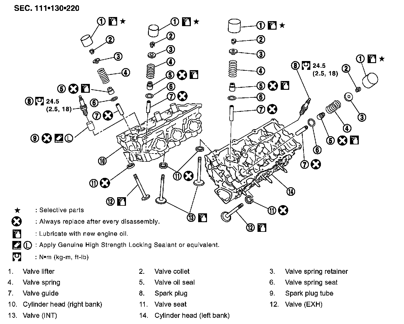 NOTE: Larger diameter valves are for intake side.