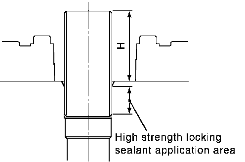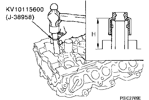 c. Using drift, press-fit spark plug tube so that its height H is as specified in the figure.