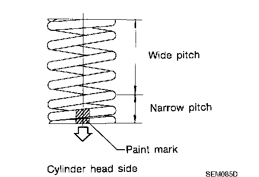 ^ Install narrow pitch end (paint mark) to cylinder head side (valve spring seat side).