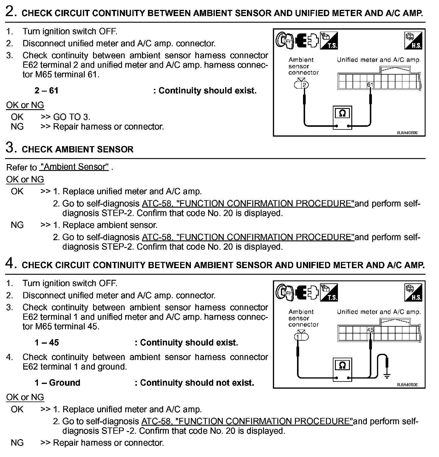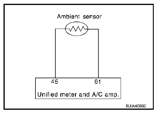 SYMPTOM: Ambient sensor circuit is open or shorted. (21 or -21 is indicated on unified meter and A/C amp. As a result of performing self-diagnosis STEP-2.)