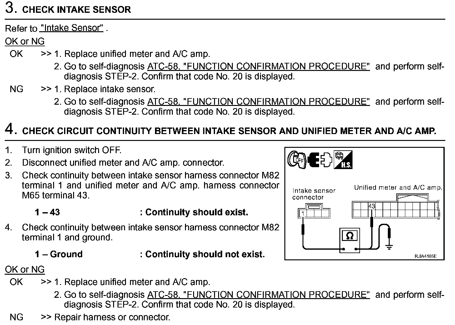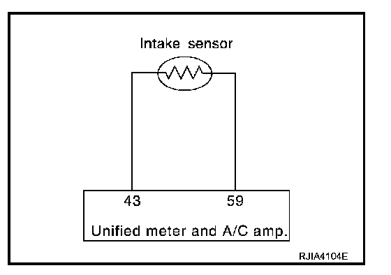 SYMPTOM: Intake sensor circuit is open or shorted. (24 or -24 is indicated on unified meter and A/C amp. as a result of performing self-diagnosis STEP-2.)