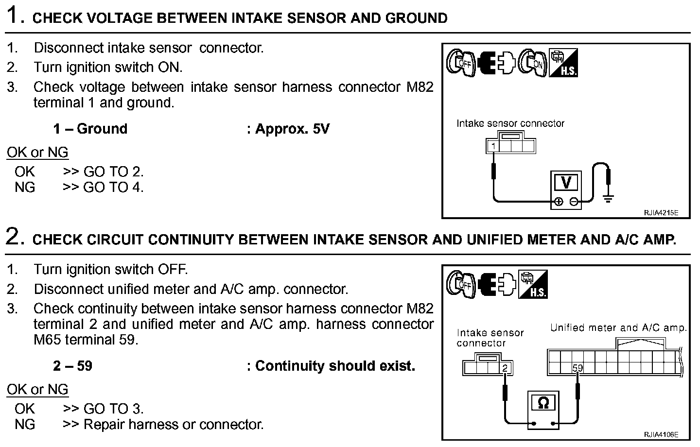 If NG, replace intake sensor.