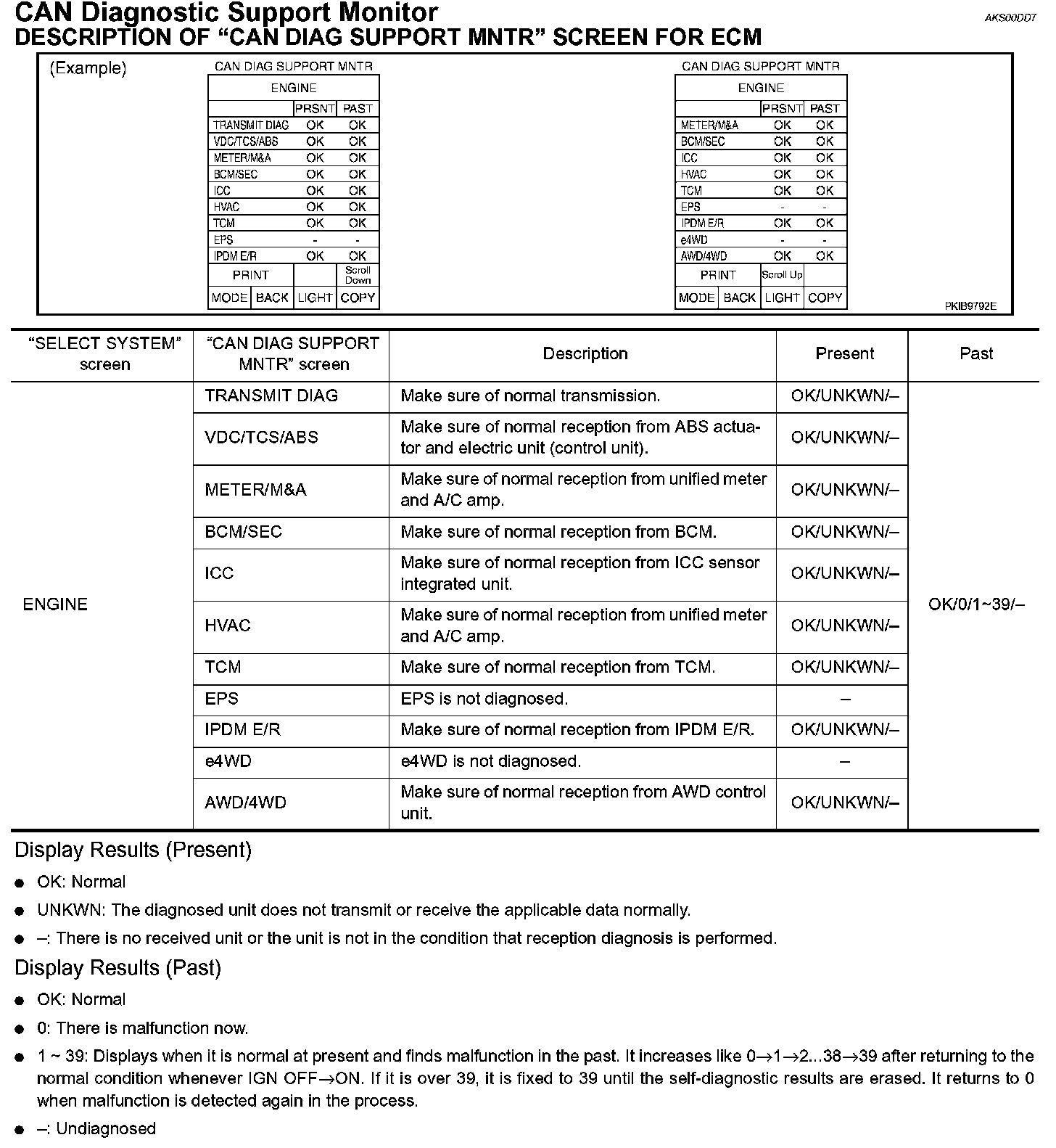 CAN Diagnostic Support MonitorDESCRIPTION OF "CAN DIAG SUPPORT MNTR" SCREEN FOR ECM
