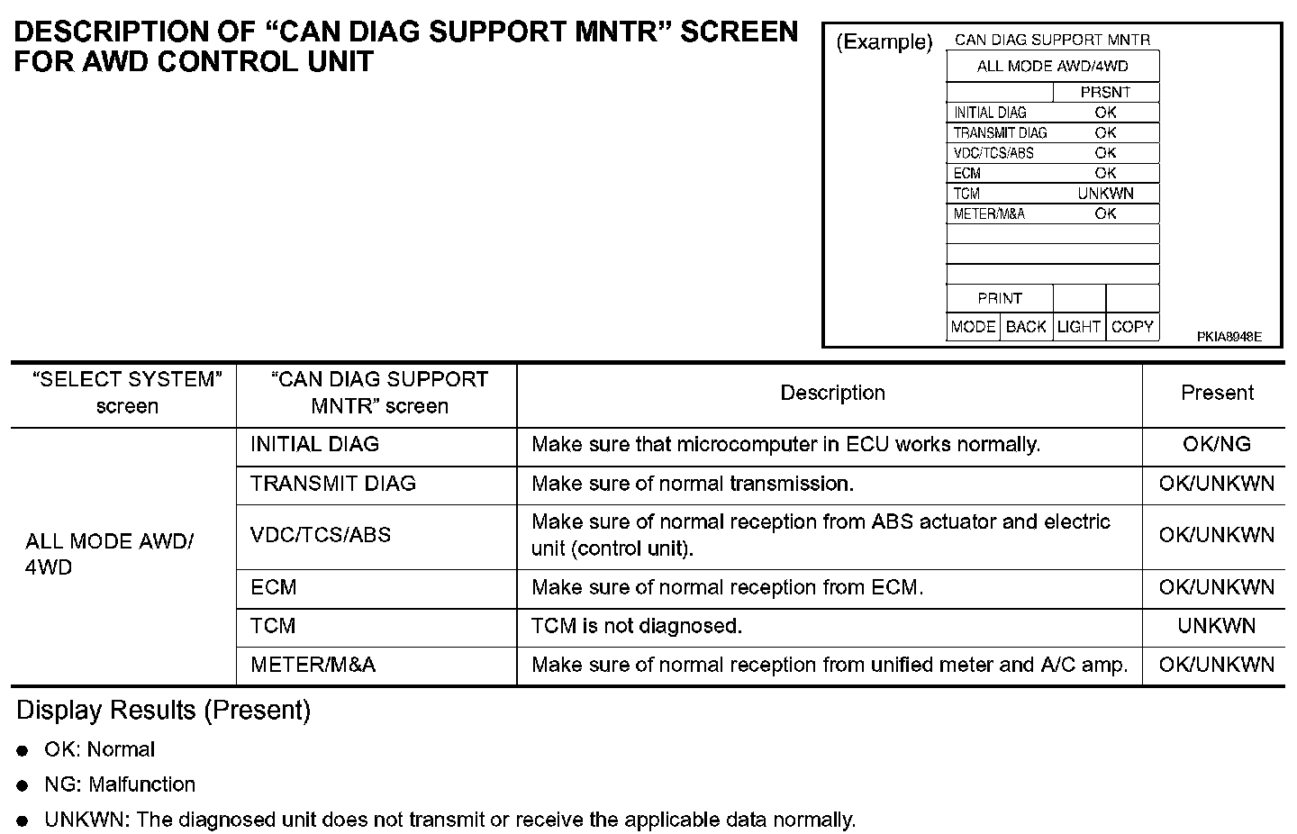 DESCRIPTION OF "CAN DIAG SUPPORT MNTR" SCREEN FOR AWD CONTROL UNIT