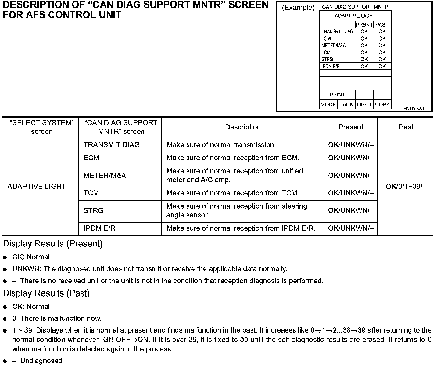 DESCRIPTION OF "CAN DIAG SUPPORT MNTR" SCREEN FOR AFS CONTROL UNIT