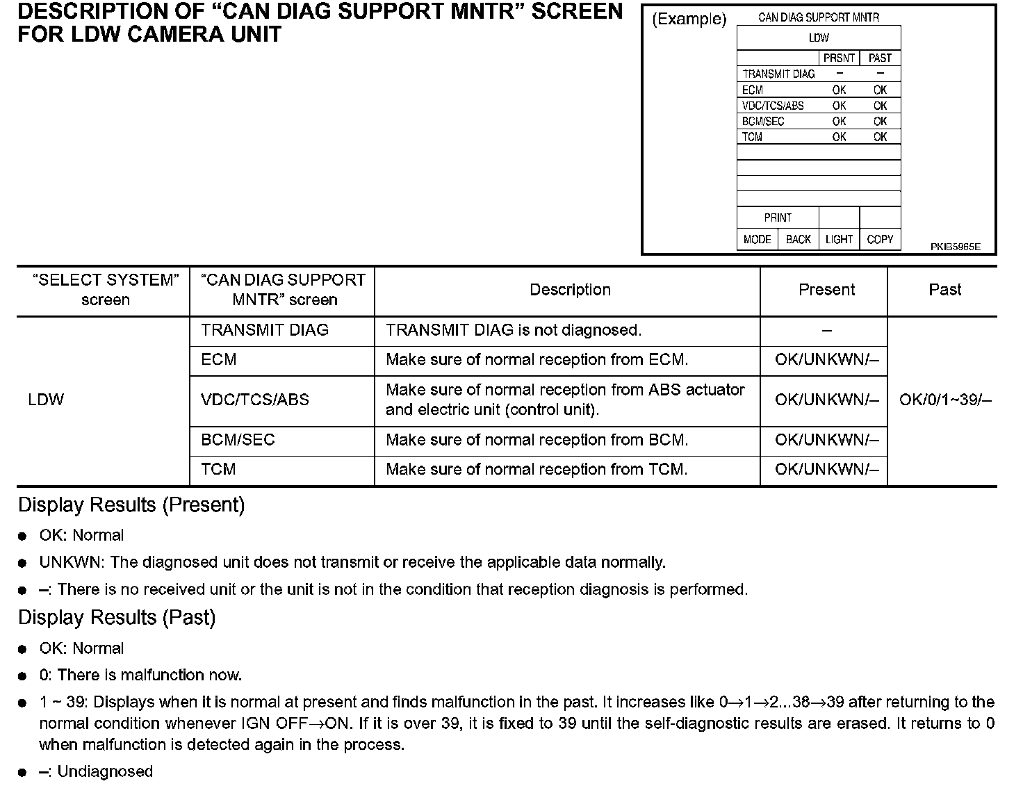 DESCRIPTION OF "CAN DIAG SUPPORT MNTR" SCREEN FOR LDW CAMERA UNIT