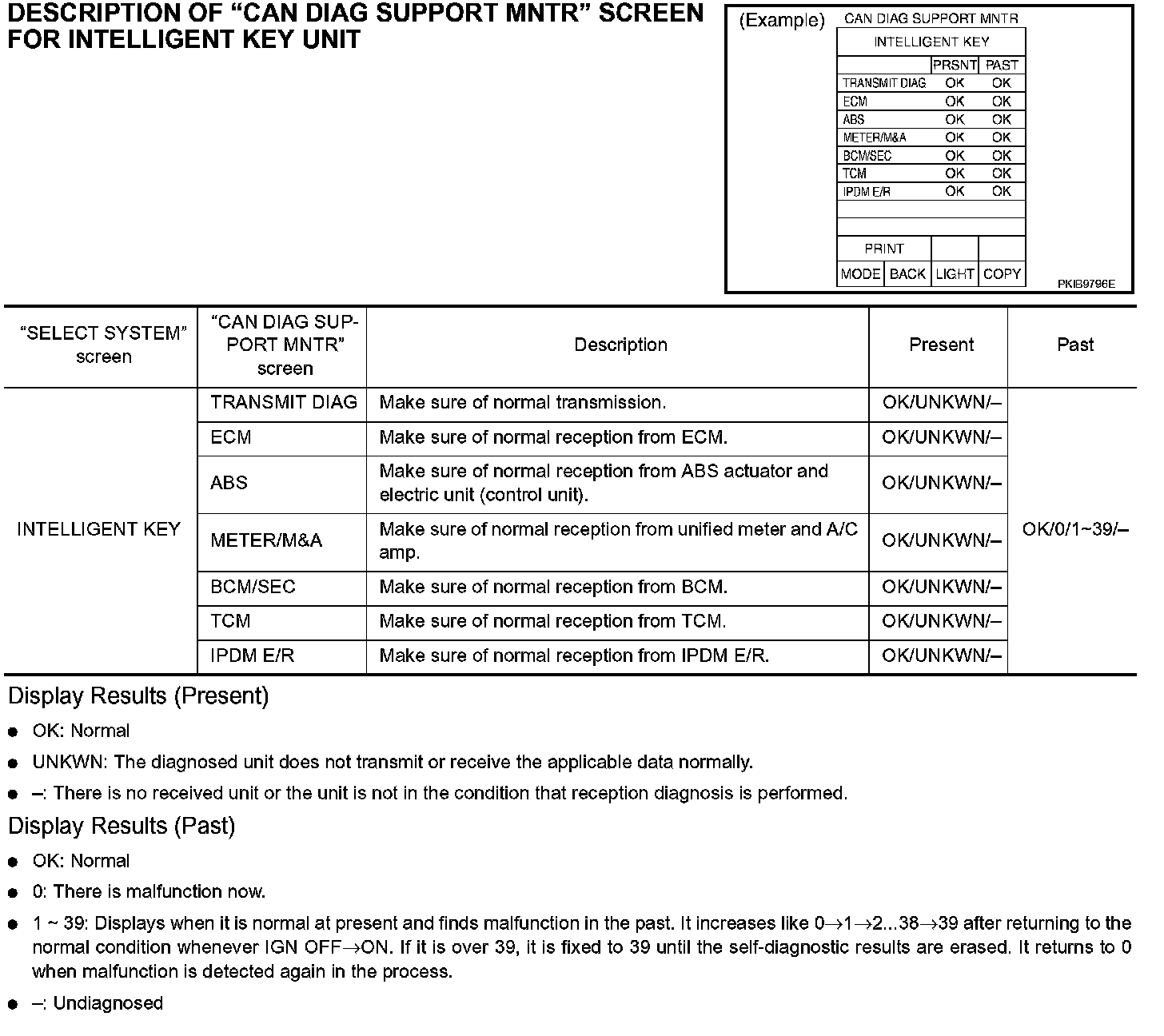 DESCRIPTION OF "CAN DIAG SUPPORT MNTR" SCREEN FOR INTELLIGENT KEY UNIT