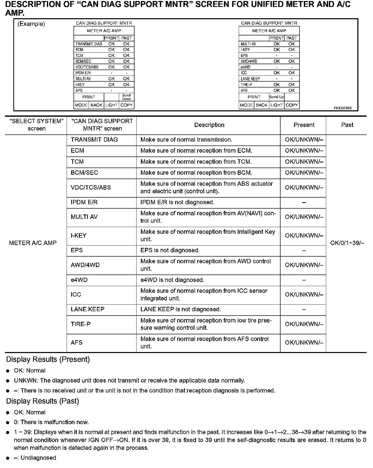 DESCRIPTION OF "CAN DIAG SUPPORT MNTR" SCREEN FOR UNIFIED METER AND A/C AMP.