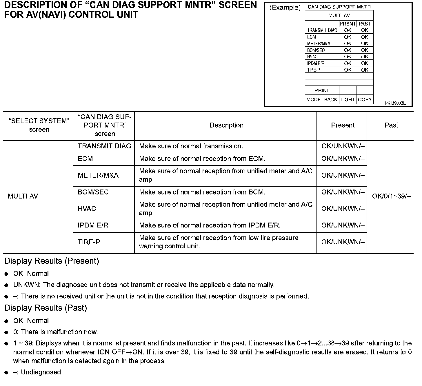 DESCRIPTION OF "CAN DIAG SUPPORT MNTR" SCREEN FOR AV(NAVI) CONTROL UNIT