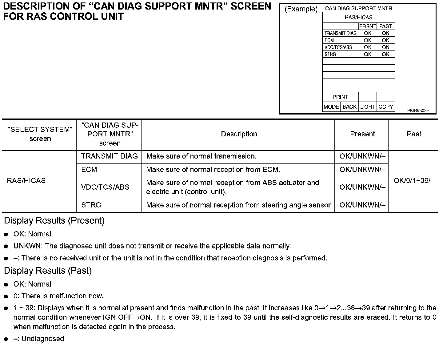 DESCRIPTION OF "CAN DIAG SUPPORT MNTR" SCREEN FOR RAS CONTROL UNIT