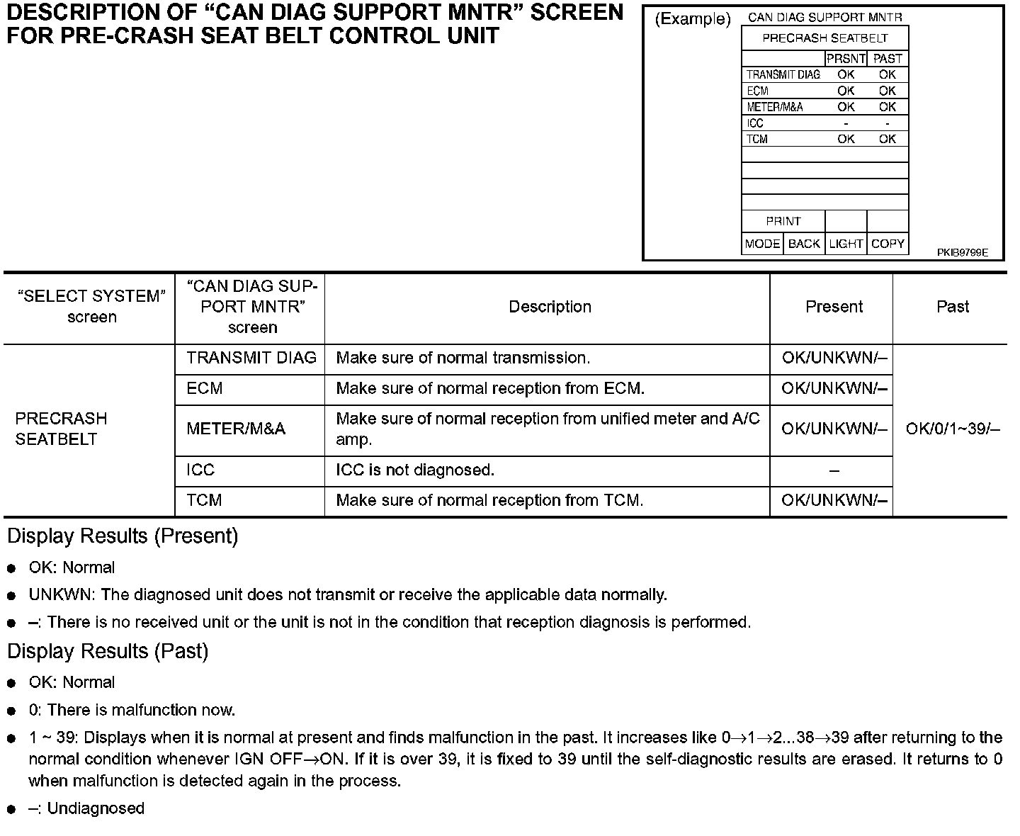 DESCRIPTION OF "CAN DIAG SUPPORT MNTR" SCREEN FOR PRE-CRASH SEAT BELT CONTROL UNIT