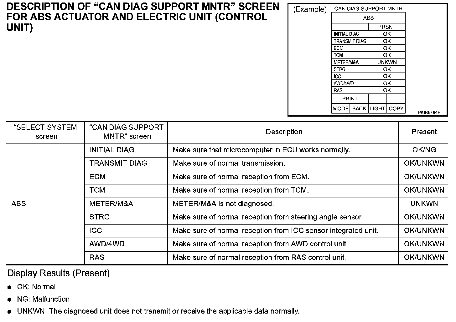 DESCRIPTION OF "CAN DIAG SUPPORT MNTR" SCREEN FOR ABS ACTUATOR AND ELECTRIC UNIT (CONTROL UNIT)