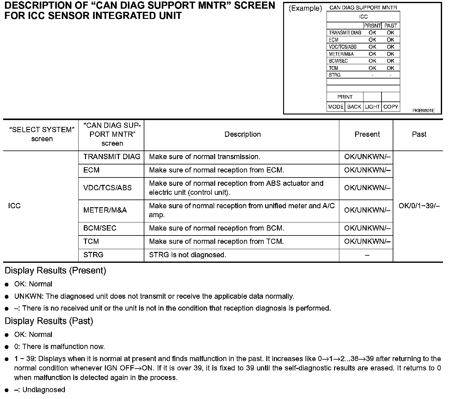 DESCRIPTION OF "CAN DIAG SUPPORT MNTR" SCREEN FOR ICC SENSOR INTEGRATED UNIT