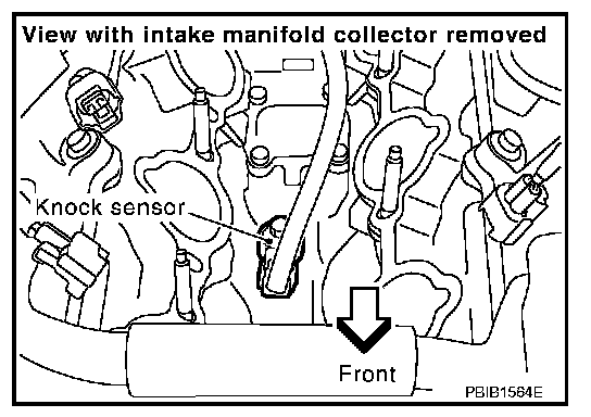 The knock sensor is attached to the cylinder block. It senses engine knocking using a piezoelectric element. A knocking vibration from the cylinder block is sensed as vibrational pressure. This pressure is converted into a voltage signal and sent to the ECM.