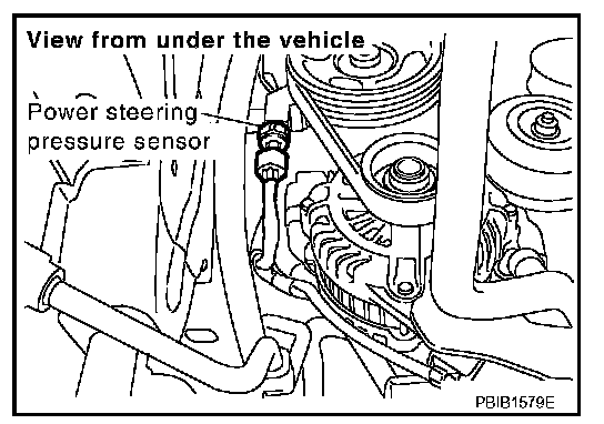 Power steering pressure (PSP) sensor is installed to the power steering high-pressure tube and detects a power steering load. This sensor is a potentiometer which transforms the power steering load into output voltage, and emits the voltage signal to the ECM. The ECM controls the electric throttle control actuator and adjusts the throttle valve opening angle to increase the engine speed and adjusts the idle speed for the increased load.