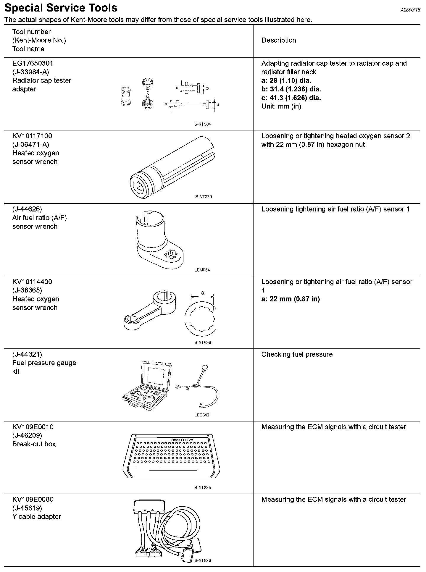 Special Service Tools: