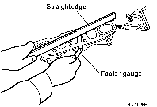 ^ Check the surface distortion of the exhaust manifold mating surface with a straightedge and a feeler gauge.