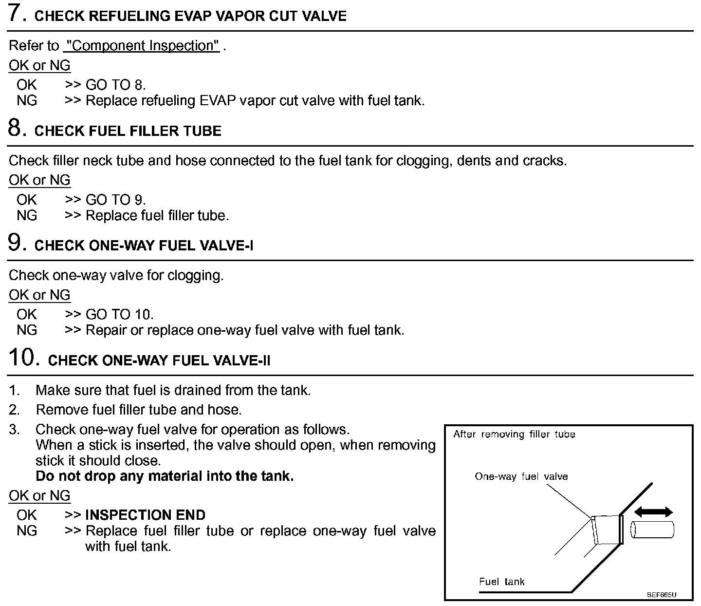Cannot Refuel/Fuel Odor From The Fuel Filler Opening Is Strong While Refueling (Steps 7 - 10):