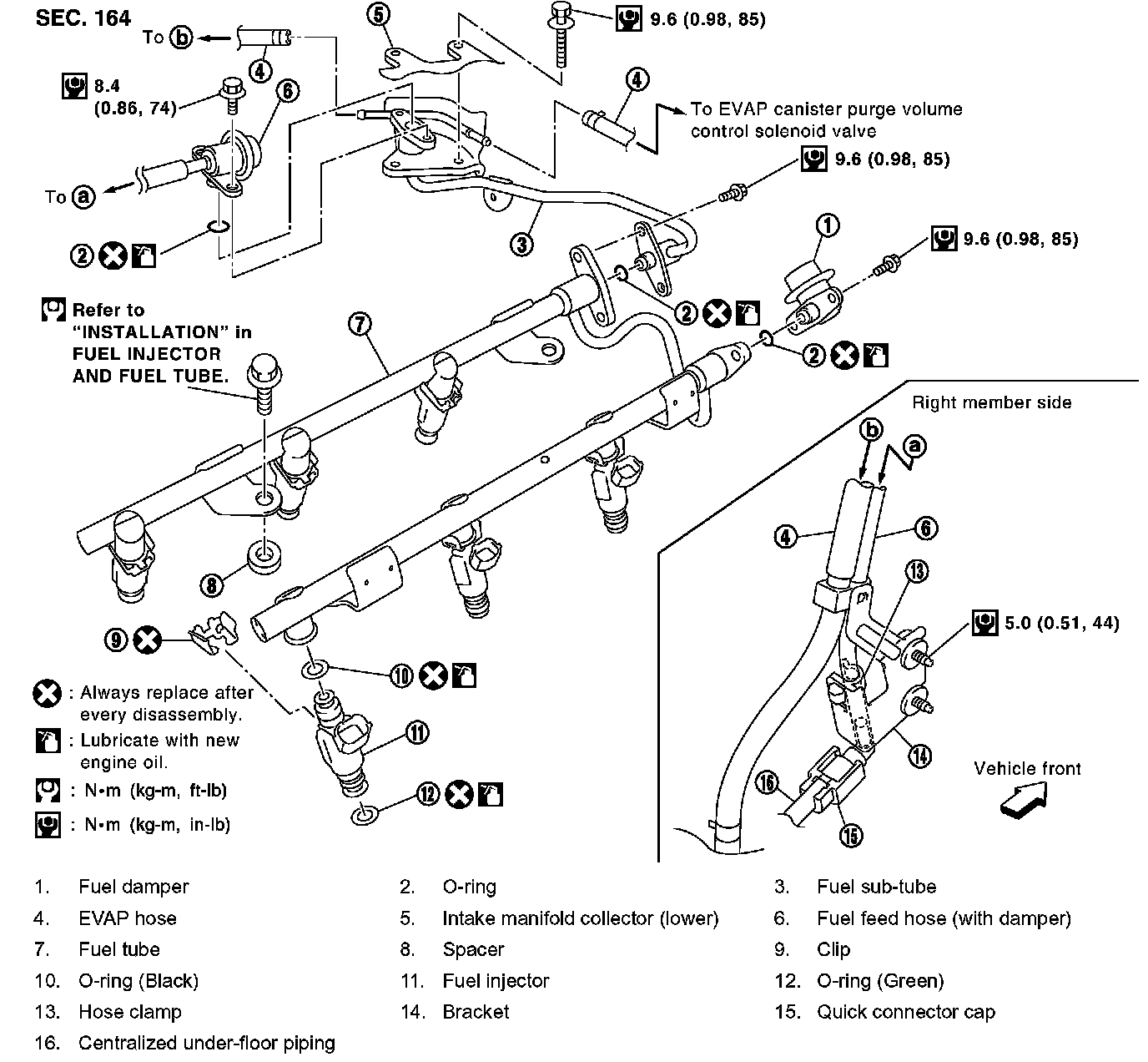 ^ Handling procedure of O-ring is the same as that of fuel damper and fuel sub-tube.