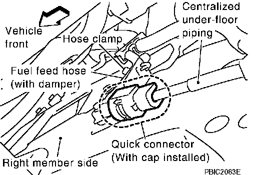 6. When separating fuel feed hose (with damper) and centralized under-floor piping connection, disconnect quick connector as follows: