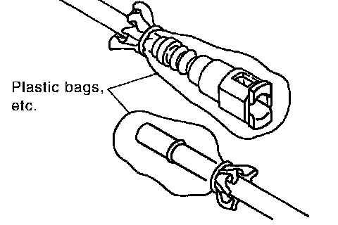 ^ To keep clean the connecting portion and to avoid damage and foreign materials, cover them completely with plastic bags or something similar.