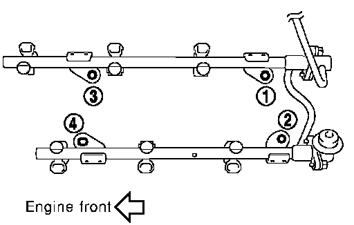 9. Loosen mounting bolts in reverse order as shown in the figure, and remove fuel tube and fuel injector assembly.