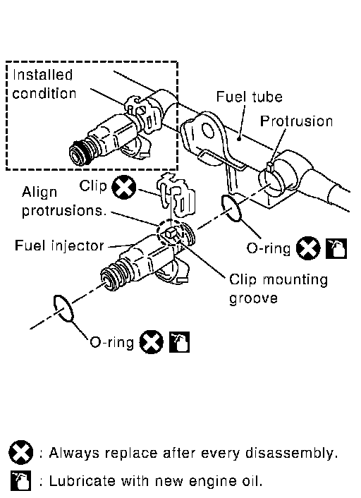 ^ Make sure that protrusions of fuel injectors are aligned with cutouts of clips after installation.