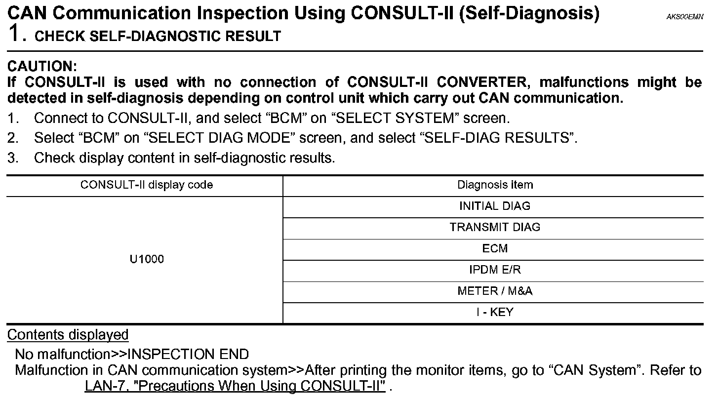 CAN Communication Inspection Using CONSULT-II (Self-Diagnosis):