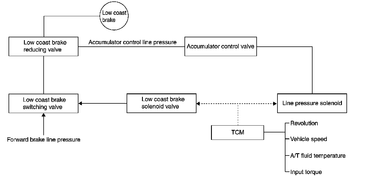 ^ The operation of the low coast brake solenoid switches the low coast brake switching valve and controls the coupling and releasing of the low coast brake.
