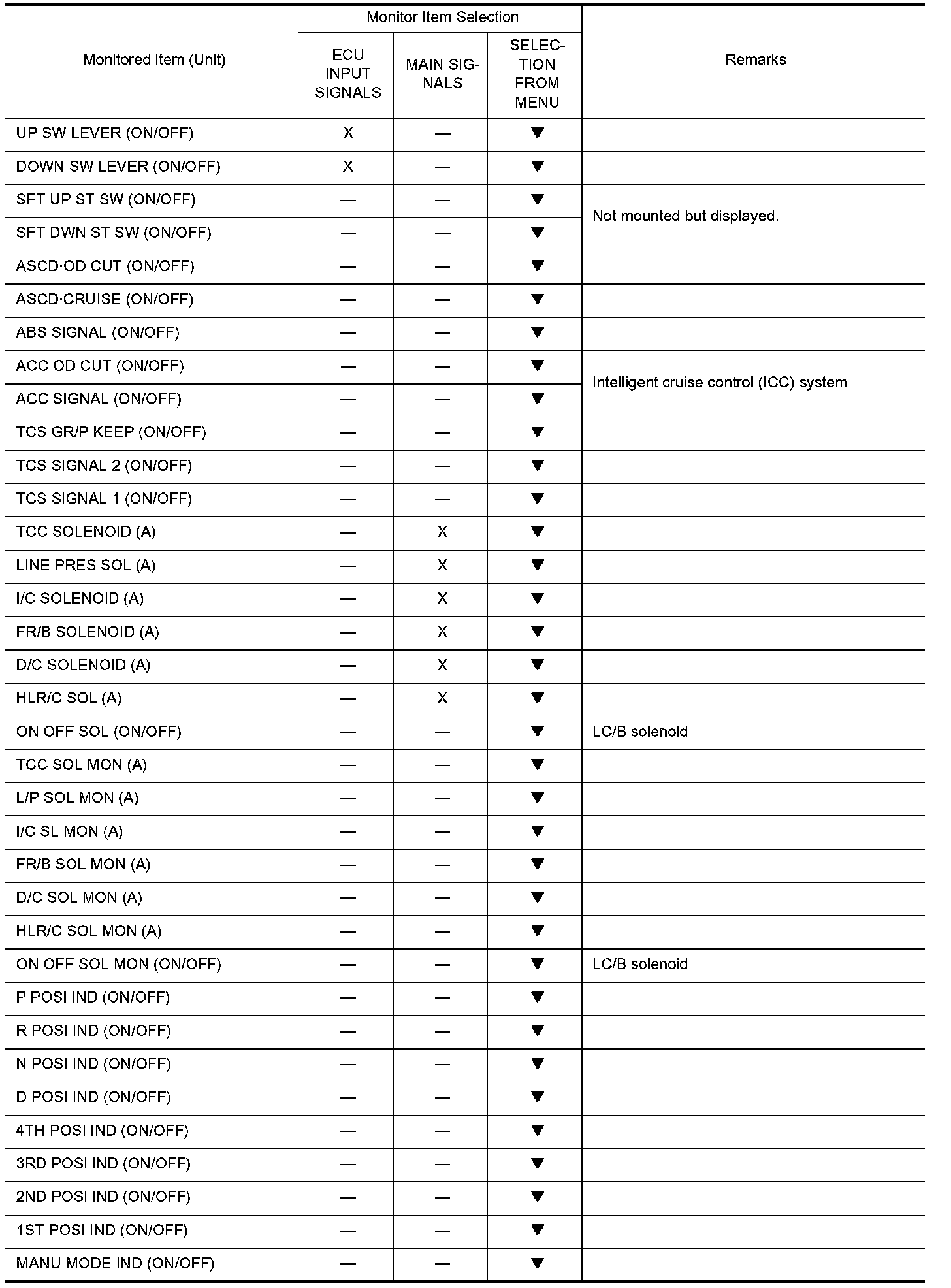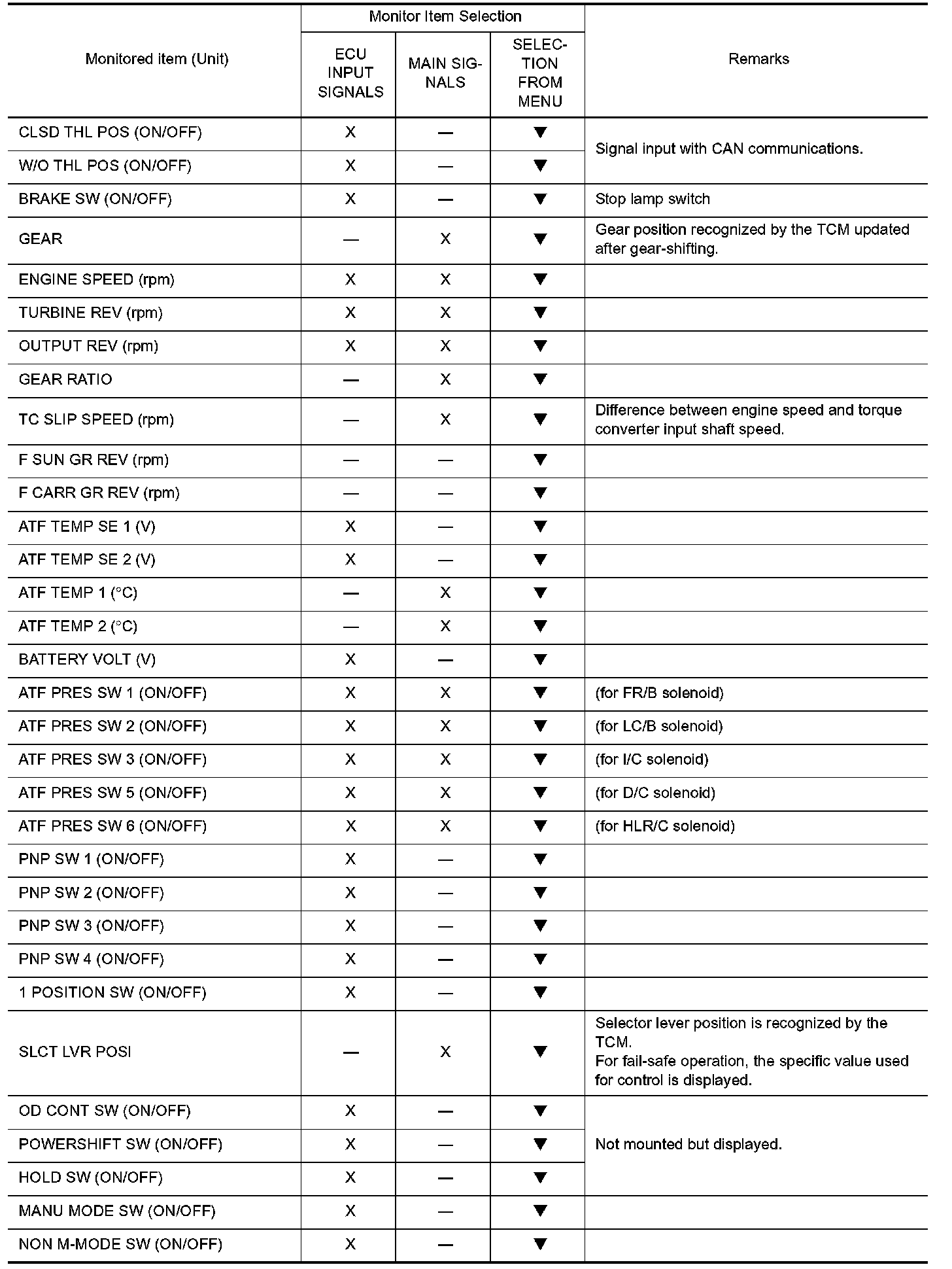 NOTE: When malfunctions detected, CONSULT-II performs "REAL TIME DIAGNOSIS". Also, any malfunction detected while in this mode will be displayed at real time.