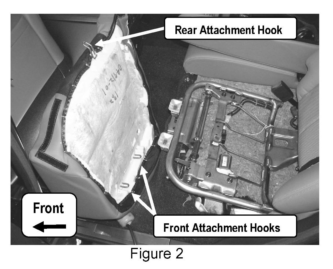 2. Then pull the seat cushion forward (towards the front of the vehicle) to release the Rear Attachment Hook (see Figure 2).