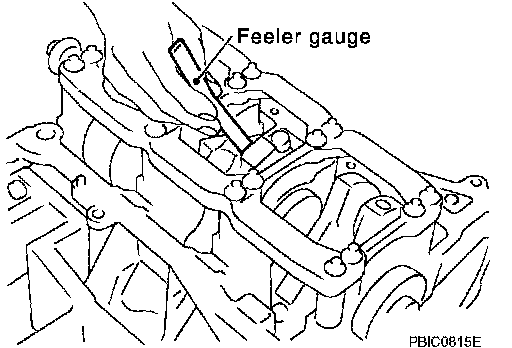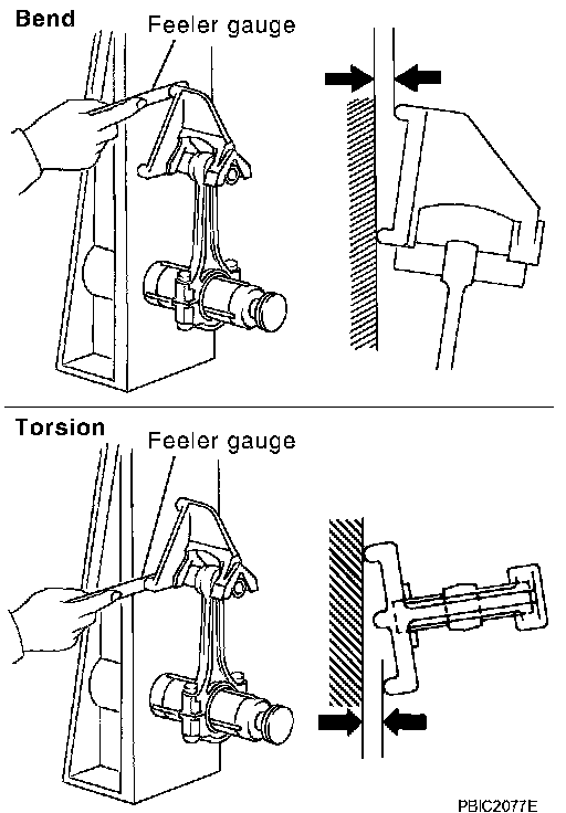 CONNECTING ROD SIDE CLEARANCE^ Measure the side clearance between connecting rod and crankshaft arm with a feeler gauge.